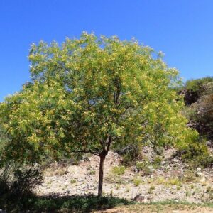 Este árbol destaca por su floración aromática y llamativa, que ocurre en primavera. Sus flores son pequeñas, de color amarillo intenso y se agrupan en racimos globulares. Además de su valor ornamental, las flores atraen a una gran variedad de polinizadores, como abejas y mariposas.