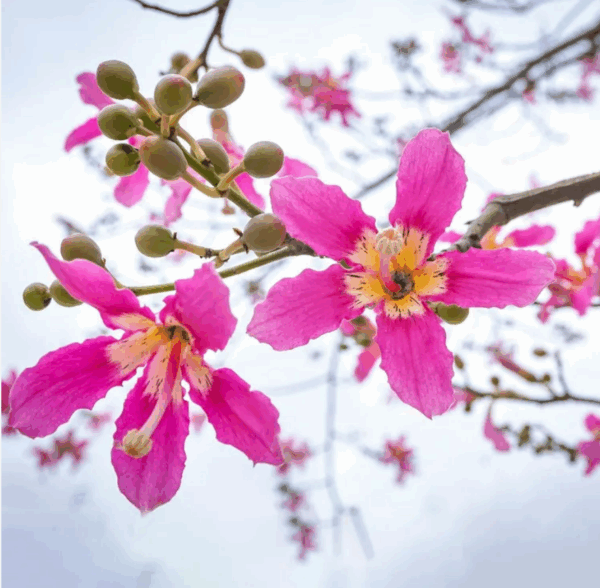 Floración: Primavera-verano (flores rosadas grandes y vistosas)